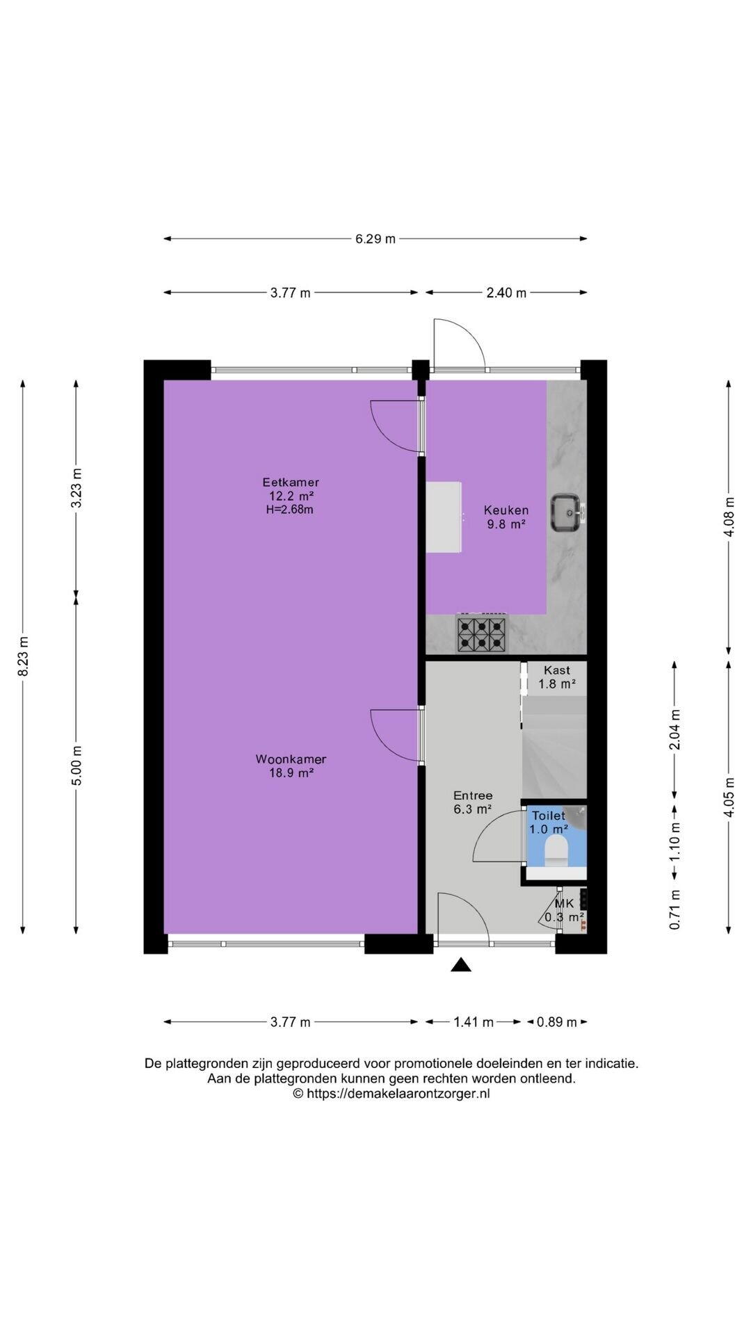 - 76 m² (12,00 meter diep en 6,30 meter breed)